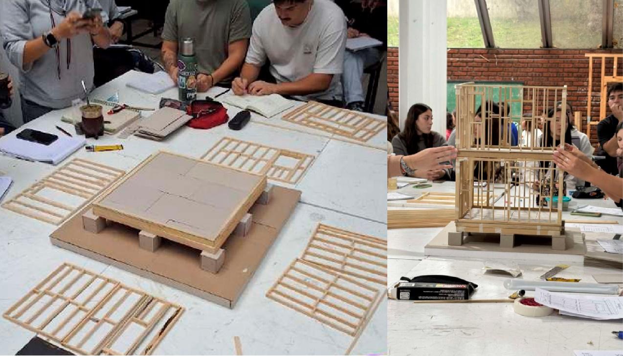 La posibilidad de trabajar con maquetas y modelos a escala real, tanto en dos como en tres dimensiones, representó una experiencia de aprendizaje altamente didáctica. La dinámica de las postas situó a los participantes frente a una problemática concreta que debían resolver en un tiempo determinado, asumiendo roles y adoptando una actitud activa frente a las consignas planteadas. Se trató de una actividad vivencial, en la cual los estudiantes abordaron un mismo problema desde diferentes enfoques, lo que permitió atender los diversos estilos de aprendizaje. Además, el proceso de preparación previo, especialmente en lo referente a la maqueta, fue de gran relevancia, ya que los introdujo en los procesos del diseño tecnológico y en la lectura e interpretación de planos. El trabajo con modelos tridimensionales realizados con materiales reales resultó especialmente formativo, ya que permitió a los estudiantes experimentar de forma directa con los materiales: conocer sus propiedades, entender su comportamiento y reflexionar sobre sus aplicaciones constructivas.