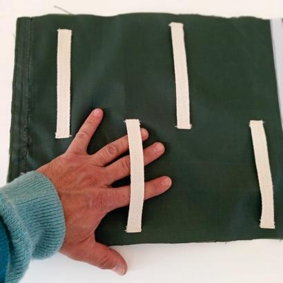 Se tuvo en cuenta el espesor de las superficies de las texturas, éstas determinan la medida general del tablero y las sustracciones donde se posicionan. Los tableros cuentan con la versatilidad de uso: pueden colocarse en la pared mediante vínculos del mismo material, así como también sobre la mesa ya que cuentan con soporte de apoyo angular encastrable del mismo material. Cada textura combina más de un material. Algunas utilizan textiles planos como base y la superposición de elementos de otros rubros, como el vivo con canto empleado habitualmente en terminaciones de bagaje. Se desarrollaron texturas cosidas con relieve mediante plegado y otras rellenas de guata para generar un efecto de ¨inflado¨. Todas estas se construyeron para estimular sensorialmente al destinatario. Las texturas cumplen una doble función: pueden emplearse de manera plana fuera del rodillo o integrarse a este, desvinculados del tablero, como piezas independientes con la textura incorporada. Las texturas se fijan a los cilindros mediante velcros, lo que permite su carácter intercambiable.