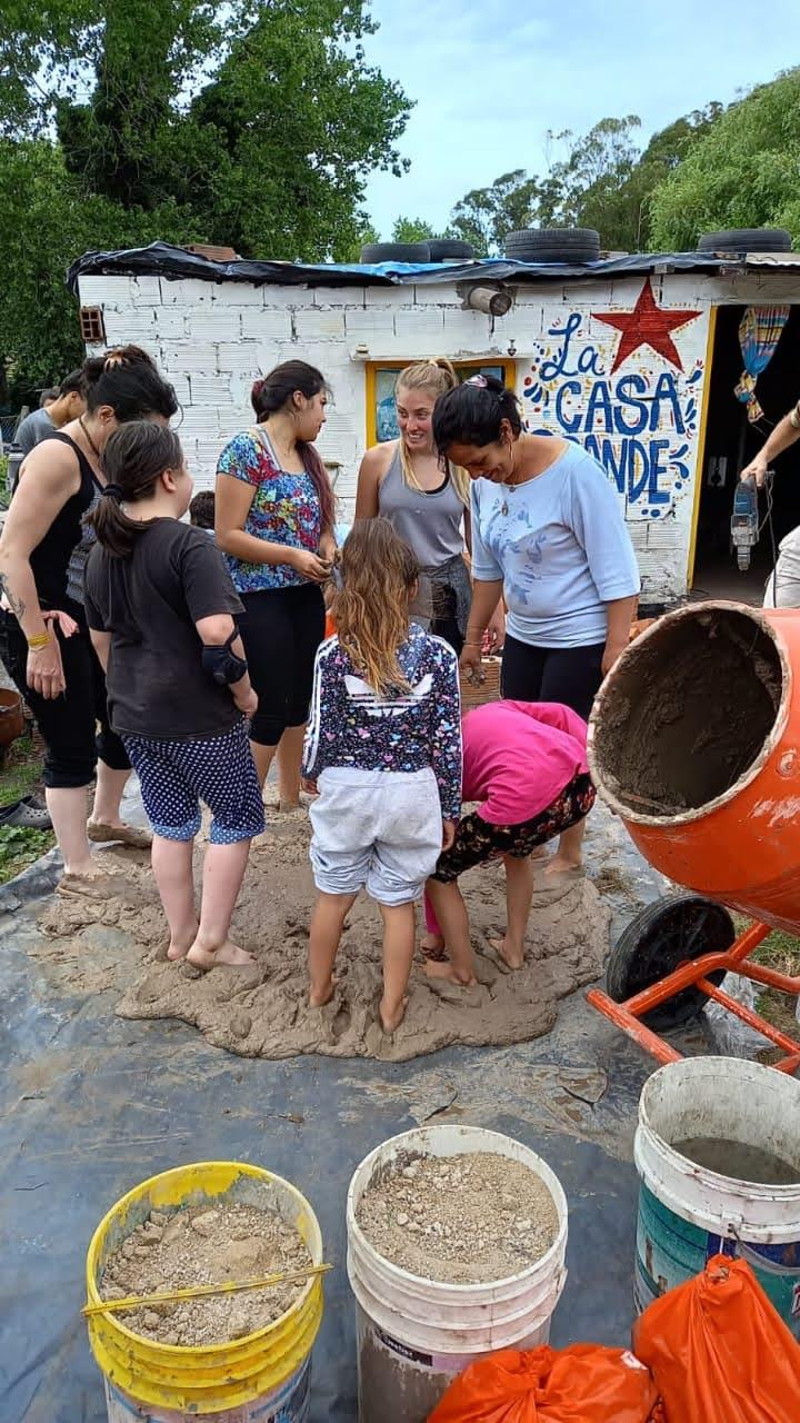 Figura Nº 2. Jornada comunitaria para la creación de un horno de barro en la vivienda de una vecina del Barrio Las Dalias, que funcionaba como casa vecinal. Diciembre de 2021 .
