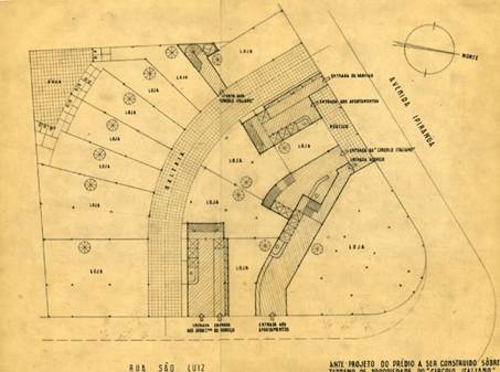 A avenida Ipiranga do edifício Itália, considerada por Maia o trecho mais importante do seu Plano, ocupou um papel particular como lugar para a verticalização, recebendo o Decreto-lei especial 41 de 1940, como mostrou Somekh (1994), complementar ao Código Arthur Saboya (promulgado em 1929 e consolidado em 1934), que determinava a altura mínima nela “em 39 metros (13 andares) e altura máxima de 115 metros, quase 40 andares (...). Nas esquinas de logradouros com largura mínima de 30 metros, os edifícios poderiam atingir a altura máxima de 135 metros ou 45 andares” (Somekh, 1994, p. 54). O decreto também estimulava, como lembrou Corrêa (2025), os chamados “corpos sobrelevados”, com a diminuição das áreas dos edifícios para ampliar as alturas, que passavam a ser mais regulares e sem empenas cegas, colocados sobre embasamentos que chegavam aos limites das calçadas. O Decreto-lei 92 do ano seguinte, 1941, ampliou ainda mais as alturas permitidas ali, em especial nos pontos focais de interesse arquitetônico, como a esquina do Itália.