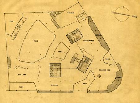 Figura 6. Giancarlo Palanti. 1º Projeto para o Circolo Italiano (Edifício Itália), São Paulo, 1951, térreo. Arquivo Giancarlo Palanti, Acervo da Biblioteca FAUUSP, São Paulo.